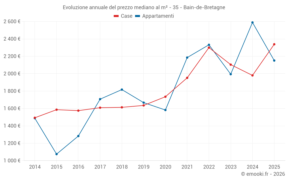 Qual è il prezzo al m2 delle case in Bain-de-Bretagne?
