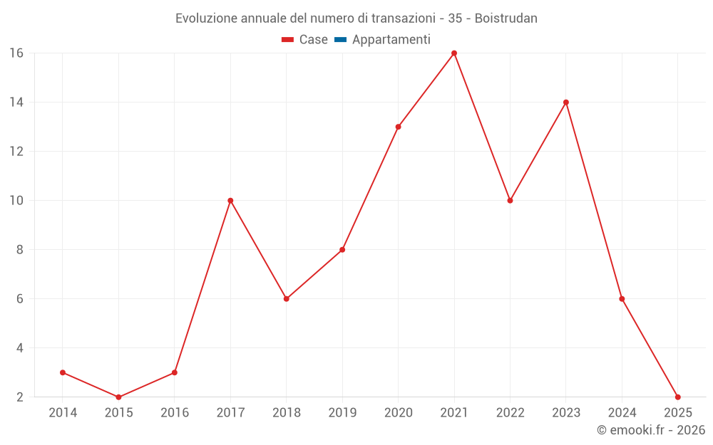 Il prezzo mediano sulle 15 transazioni di case degli ultimi 24 mesi nel comune di Boistrudan era di 1 765 € al metro quadrato per un valore patrimoniale mediano di 187 000 €. In questo periodo il 60% delle transazioni era tra 1 417 e 2 181 € al metro quadrato (dal 2° all'8° decile).