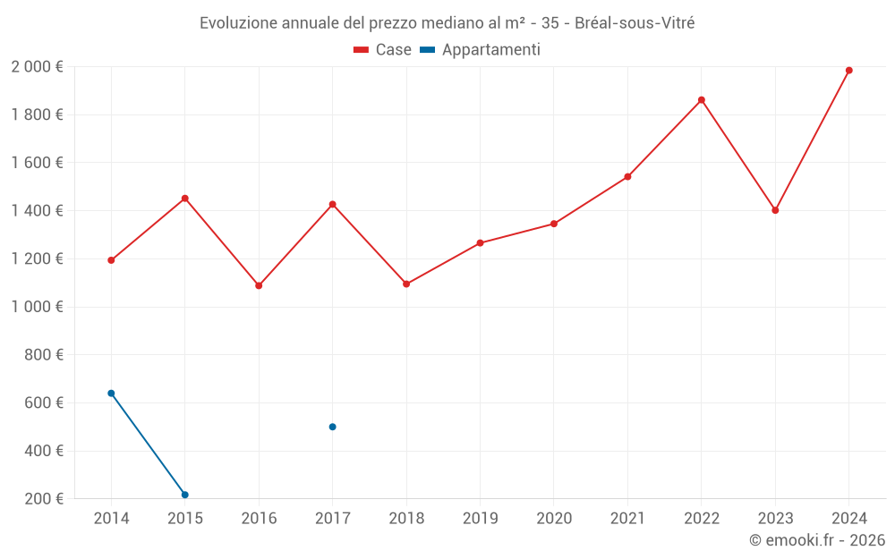 Evoluzione del prezzo mediano al m² degli appartamenti