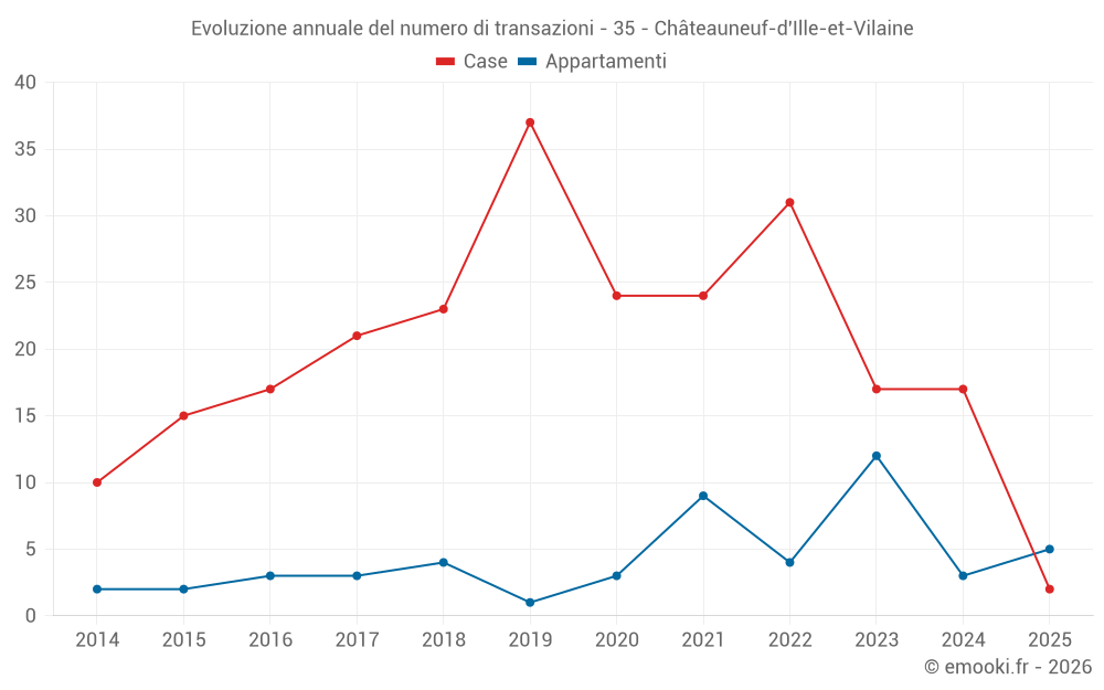 Il prezzo mediano sulle 25 transazioni di case degli ultimi 24 mesi nel comune di Châteauneuf-d'Ille-et-Vilaine era di 2 522 € al metro quadrato per un valore patrimoniale mediano di 246 700 €. In questo periodo il 60% delle transazioni era tra 1 870 e 3 021 € al metro quadrato (dal 2° all'8° decile).