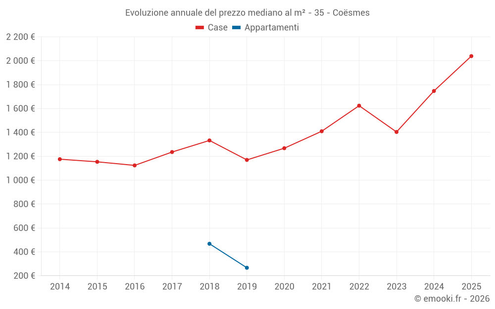 Il prezzo mediano sulle 22 transazioni di case degli ultimi 24 mesi nel comune di Coësmes era di 1 558 € al metro quadrato per un valore patrimoniale mediano di 160 000 €. In questo periodo il 60% delle transazioni era tra 1 156 e 1 879 € al metro quadrato (dal 2° all'8° decile).