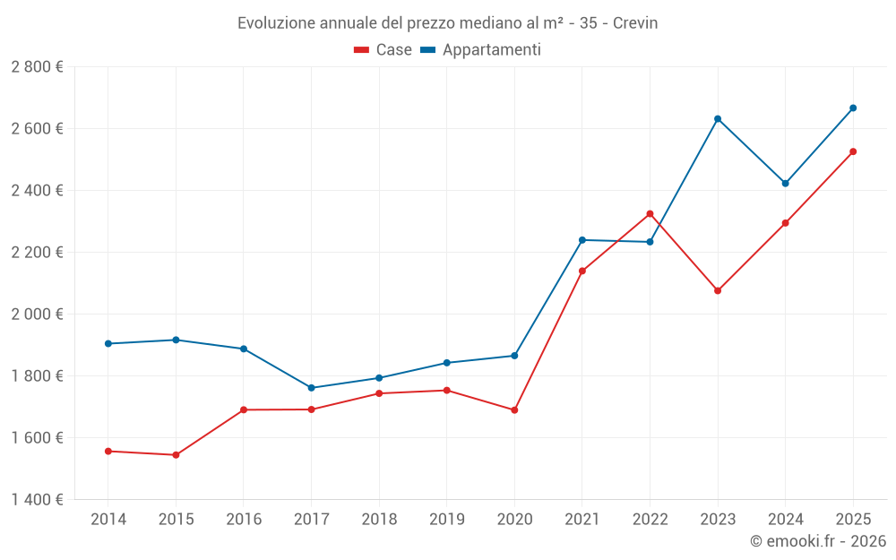 Qual è il prezzo al m2 delle case in Crevin?