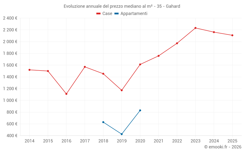 Il prezzo mediano sulle 25 transazioni di case degli ultimi 24 mesi nel comune di Gahard era di 2 206 € al metro quadrato per un valore patrimoniale mediano di 202 350 €. In questo periodo il 60% delle transazioni era tra 1 435 e 2 670 € al metro quadrato (dal 2° all'8° decile).