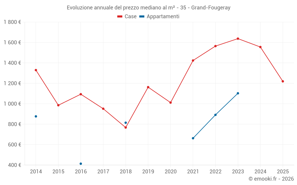 Il prezzo mediano sulle 28 transazioni di case degli ultimi 12 mesi nel comune di Grand-Fougeray era di 1 446 € al metro quadrato per un valore patrimoniale mediano di 121 500 €. In questo periodo il 60% delle transazioni era tra 658 e 1 992 € al metro quadrato (dal 2° all'8° decile).