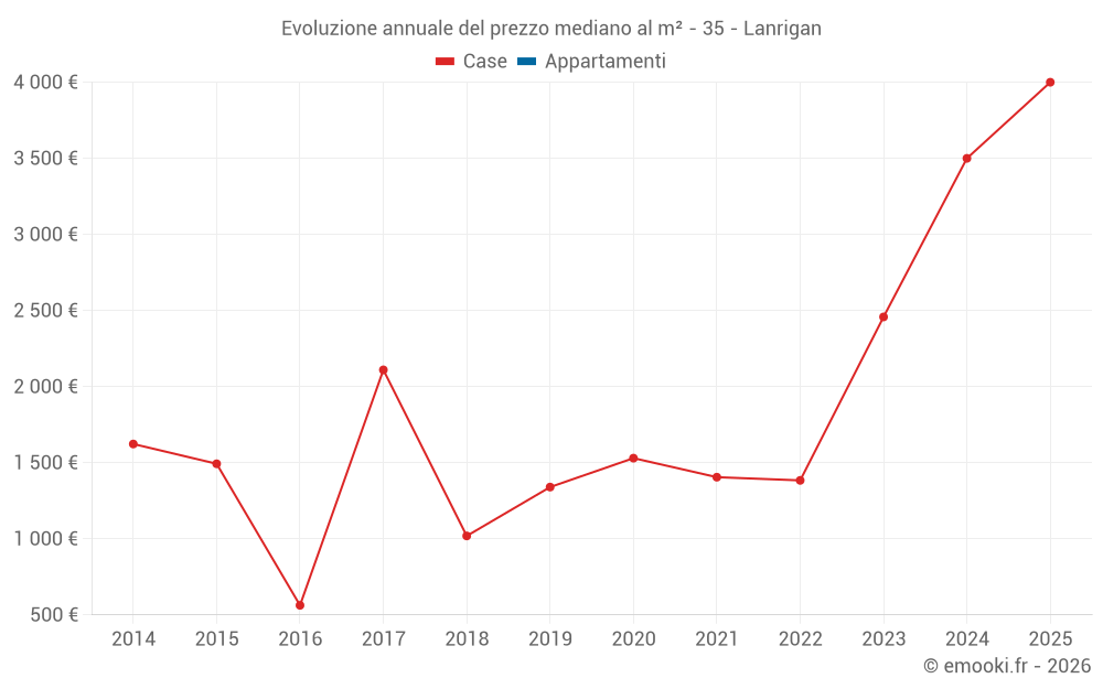 Evoluzione annuale del prezzo mediano al m²