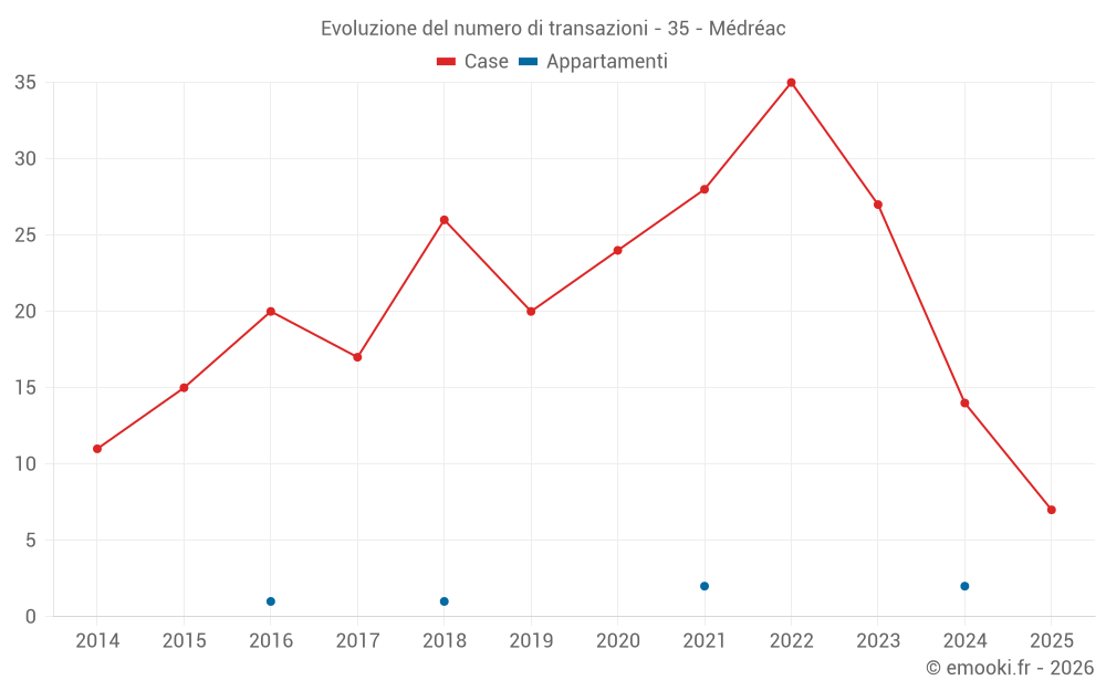 Il prezzo mediano sulle 36 transazioni di case degli ultimi 24 mesi nel comune di Médréac era di 1 662 € al metro quadrato per un valore patrimoniale mediano di 173 000 €. In questo periodo il 60% delle transazioni era tra 1 318 e 2 143 € al metro quadrato (dal 2° all'8° decile).