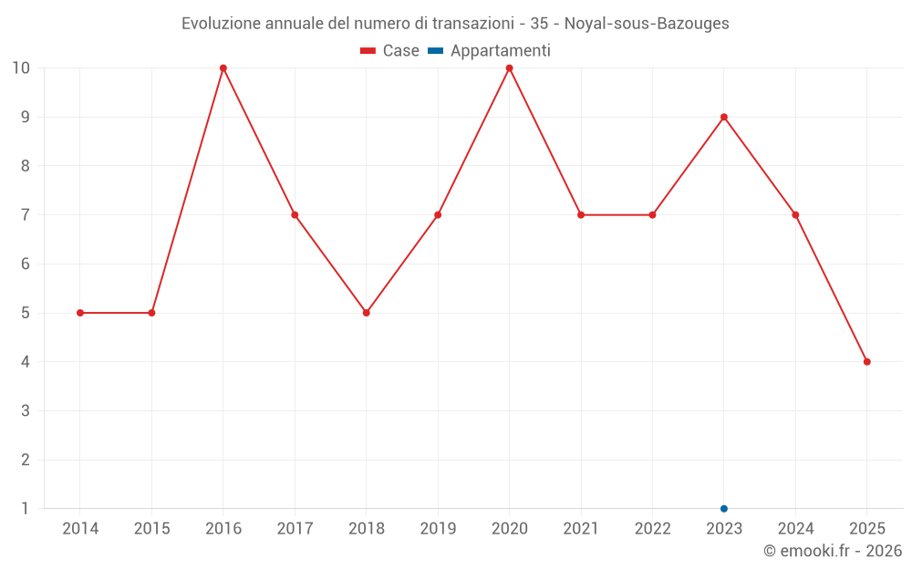 Il prezzo mediano sulle 16 transazioni di case degli ultimi 24 mesi nel comune di Noyal-sous-Bazouges era di 1 730 € al metro quadrato per un valore patrimoniale mediano di 154 500 €. In questo periodo il 60% delle transazioni era tra 879 e 2 341 € al metro quadrato (dal 2° all'8° decile).