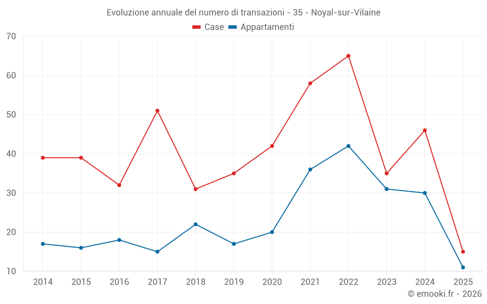 Il prezzo mediano sulle 28 transazioni di appartamenti degli ultimi 12 mesi nel comune di Noyal-sur-Vilaine era di 3 024 € al metro quadrato per un valore patrimoniale mediano di 139 500 €. In questo periodo il 60% delle transazioni era tra 2 727 e 3 356 € al metro quadrato (dal 2° all'8° decile).
