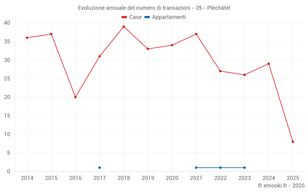 Il prezzo mediano sulle 28 transazioni di case degli ultimi 12 mesi nel comune di Pléchâtel era di 2 047 € al metro quadrato per un valore patrimoniale mediano di 215 000 €. In questo periodo il 60% delle transazioni era tra 1 603 e 2 511 € al metro quadrato (dal 2° all'8° decile).