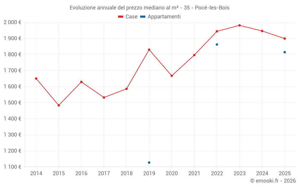 Qual è il prezzo al m2 delle case in Pocé-les-Bois?