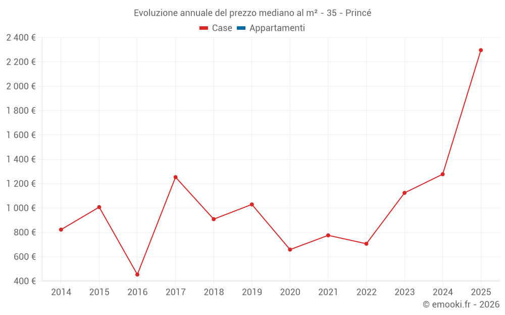 Evoluzione del prezzo mediano al m² degli appartamenti