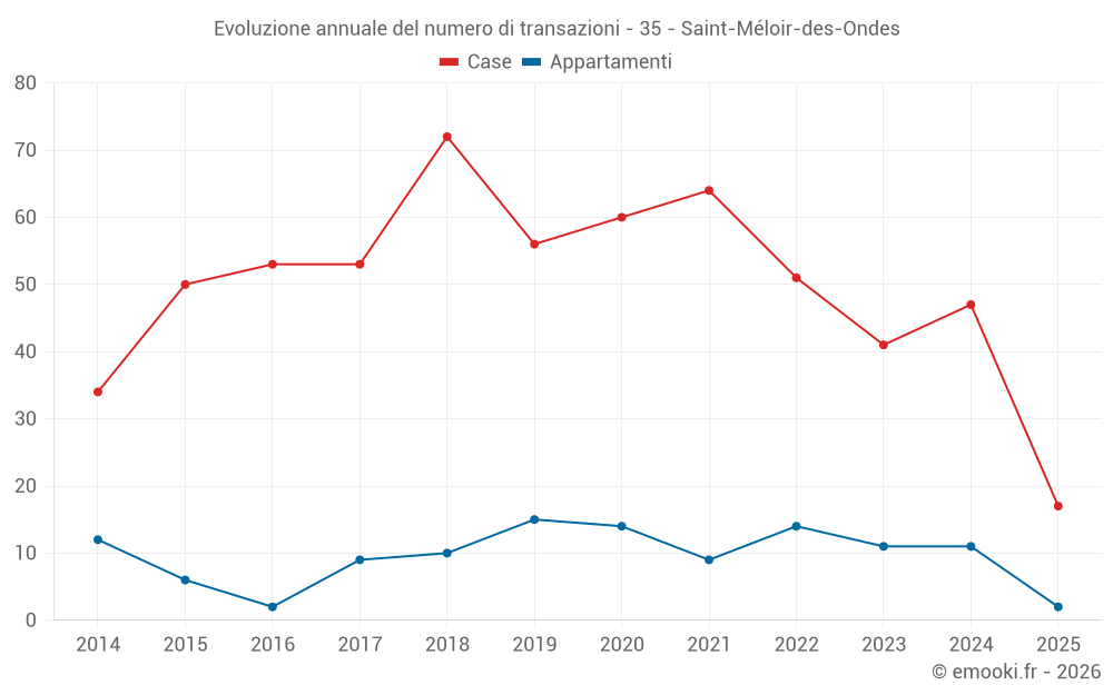 Il prezzo mediano sulle 18 transazioni di appartamenti degli ultimi 24 mesi nel comune di Saint-Méloir-des-Ondes era di 3 068 € al metro quadrato per un valore patrimoniale mediano di 156 700 €. In questo periodo il 60% delle transazioni era tra 2 608 e 3 578 € al metro quadrato (dal 2° all'8° decile).