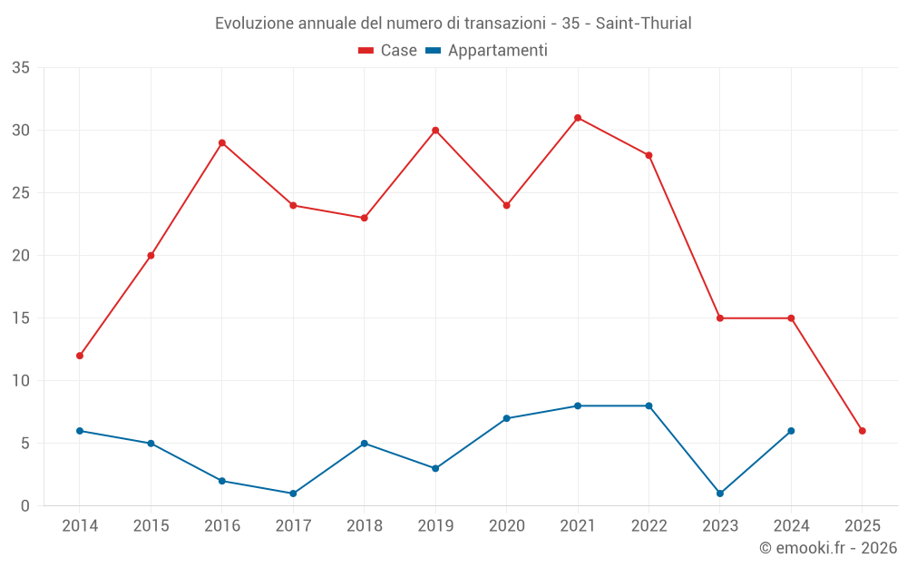 Il prezzo mediano sulle 17 transazioni di case degli ultimi 12 mesi nel comune di Saint-Thurial era di 2 184 € al metro quadrato per un valore patrimoniale mediano di 256 000 €. In questo periodo il 60% delle transazioni era tra 1 977 e 2 409 € al metro quadrato (dal 2° all'8° decile).