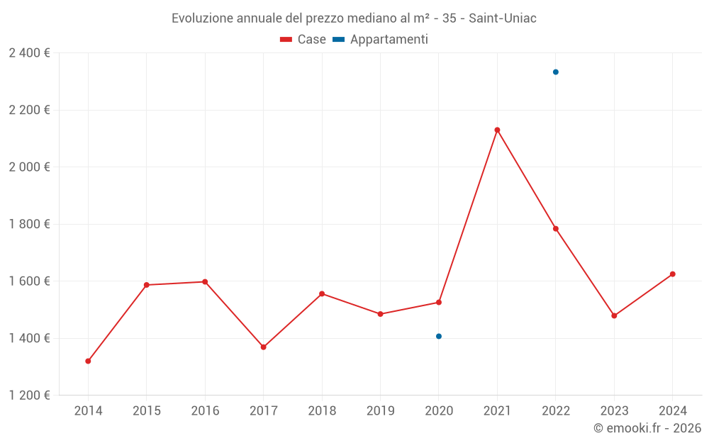 Evoluzione del prezzo mediano al m² degli appartamenti