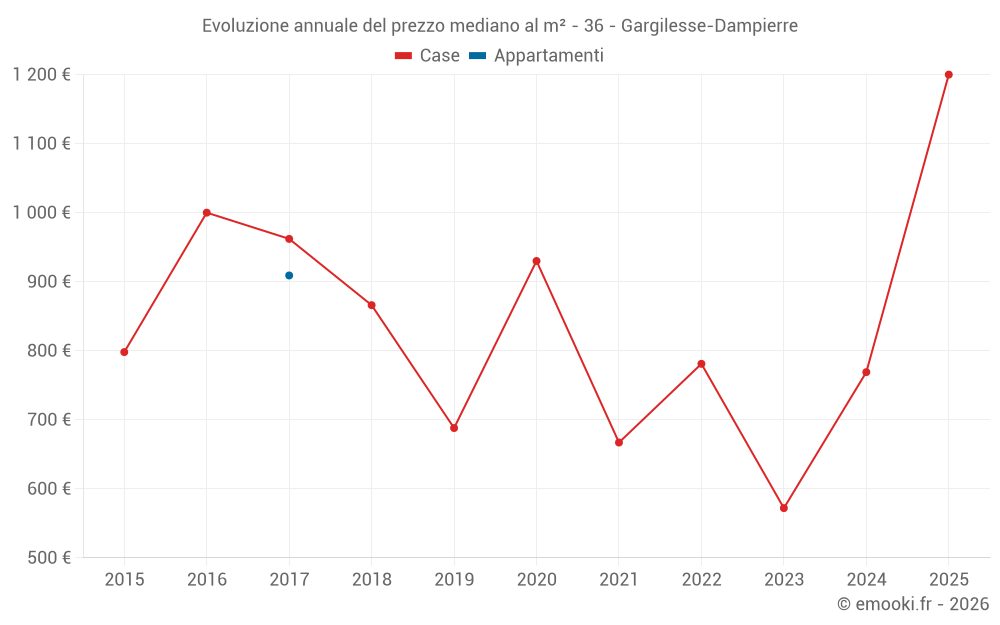 Il prezzo mediano sulle 19 transazioni di case degli ultimi 24 mesi nel comune di Gargilesse-Dampierre era di 698 € al metro quadrato per un valore patrimoniale mediano di 57 500 €. In questo periodo il 60% delle transazioni era tra 384 e 1 213 € al metro quadrato (dal 2° all'8° decile).