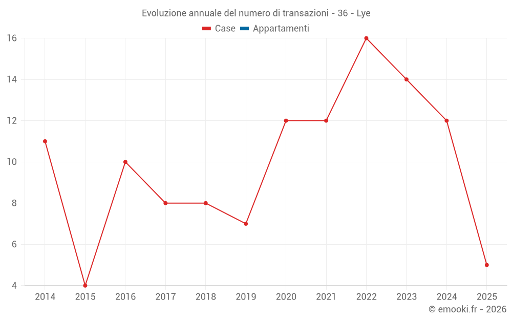 Il prezzo mediano sulle 29 transazioni di case degli ultimi 24 mesi nel comune di Lye era di 1 066 € al metro quadrato per un valore patrimoniale mediano di 100 000 €. In questo periodo il 60% delle transazioni era tra 755 e 1 494 € al metro quadrato (dal 2° all'8° decile).