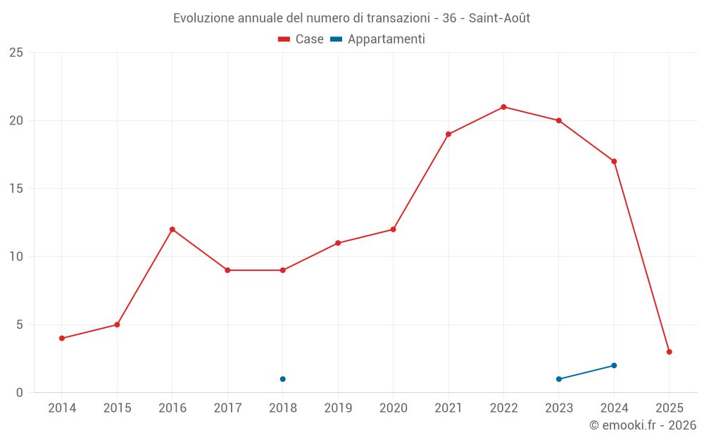 Il prezzo mediano sulle 27 transazioni di case degli ultimi 24 mesi nel comune di Saint-Août era di 1 290 € al metro quadrato per un valore patrimoniale mediano di 100 000 €. In questo periodo il 60% delle transazioni era tra 724 e 1 550 € al metro quadrato (dal 2° all'8° decile).