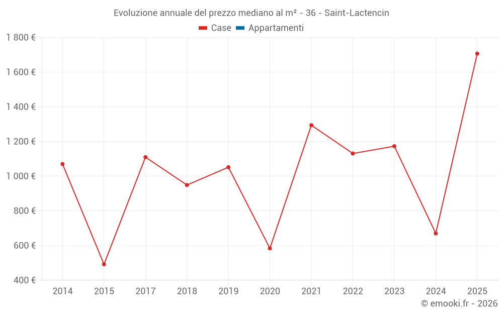 Evoluzione del prezzo mediano al m² degli appartamenti