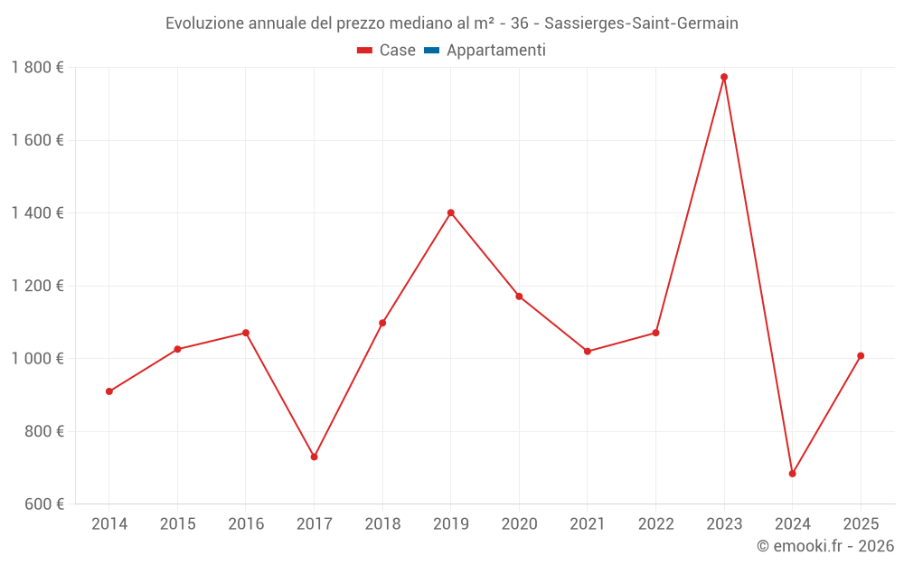 Evoluzione del prezzo mediano al m² degli appartamenti