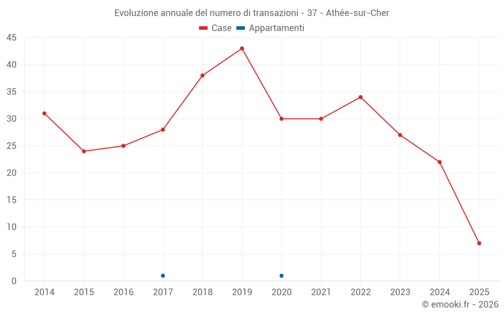Il prezzo mediano sulle 19 transazioni di case degli ultimi 12 mesi nel comune di Athée-sur-Cher era di 2 151 € al metro quadrato per un valore patrimoniale mediano di 230 000 €. In questo periodo il 60% delle transazioni era tra 1 668 e 2 950 € al metro quadrato (dal 2° all'8° decile).