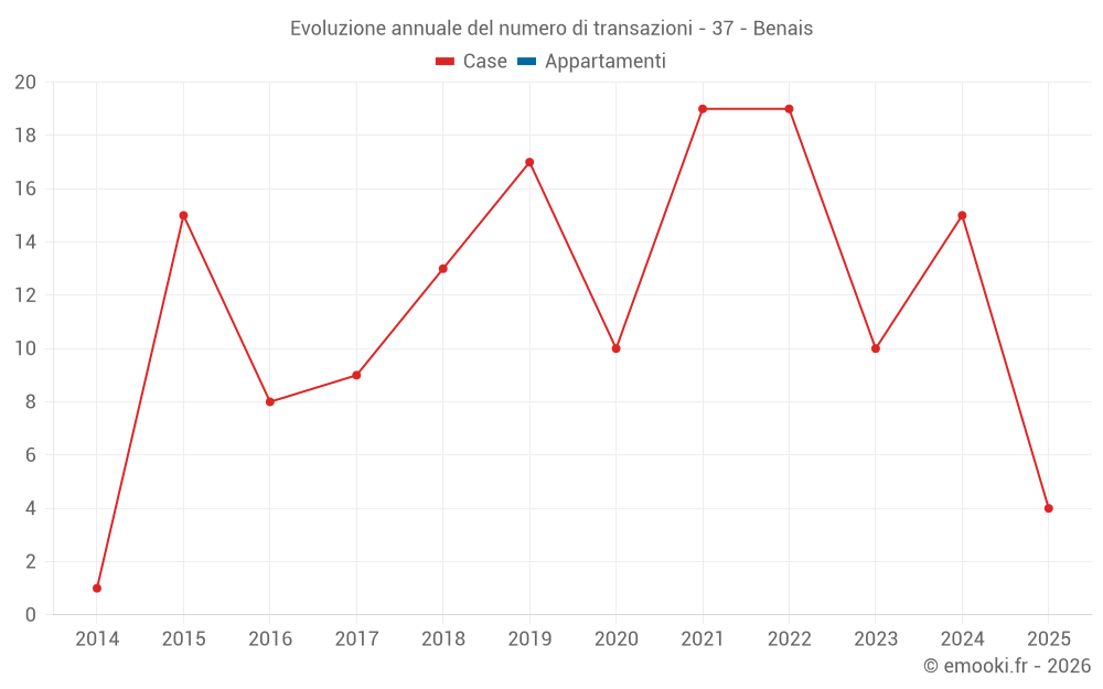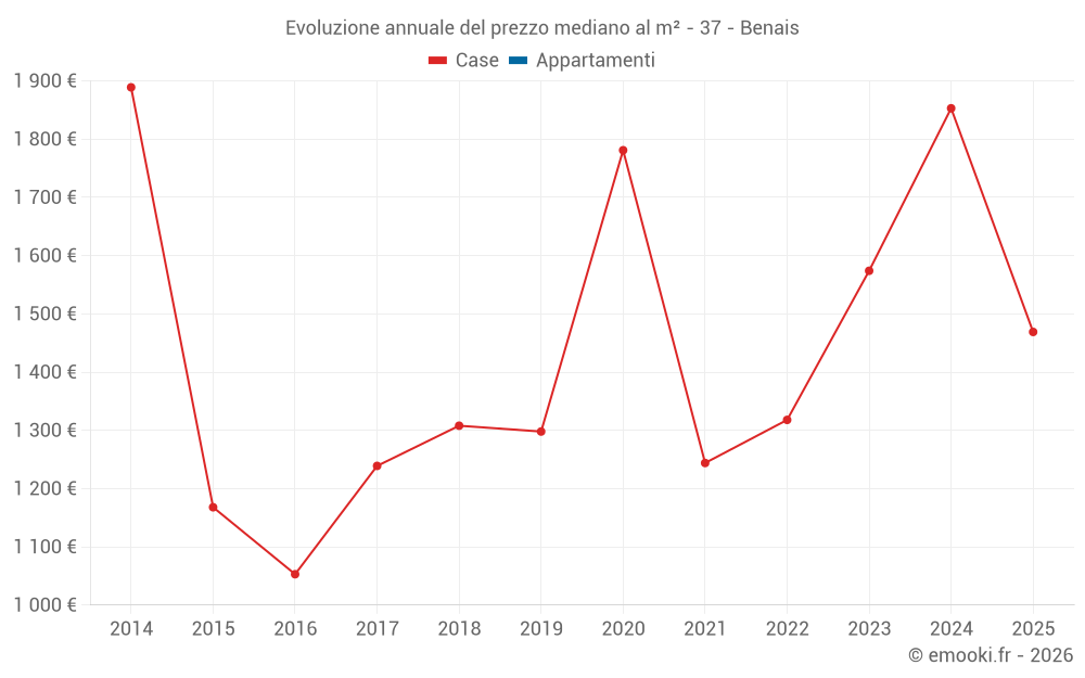 Il prezzo mediano sulle 26 transazioni di case degli ultimi 24 mesi nel comune di Benais era di 1 548 € al metro quadrato per un valore patrimoniale mediano di 144 025 €. In questo periodo il 60% delle transazioni era tra 826 e 1 982 € al metro quadrato (dal 2° all'8° decile).