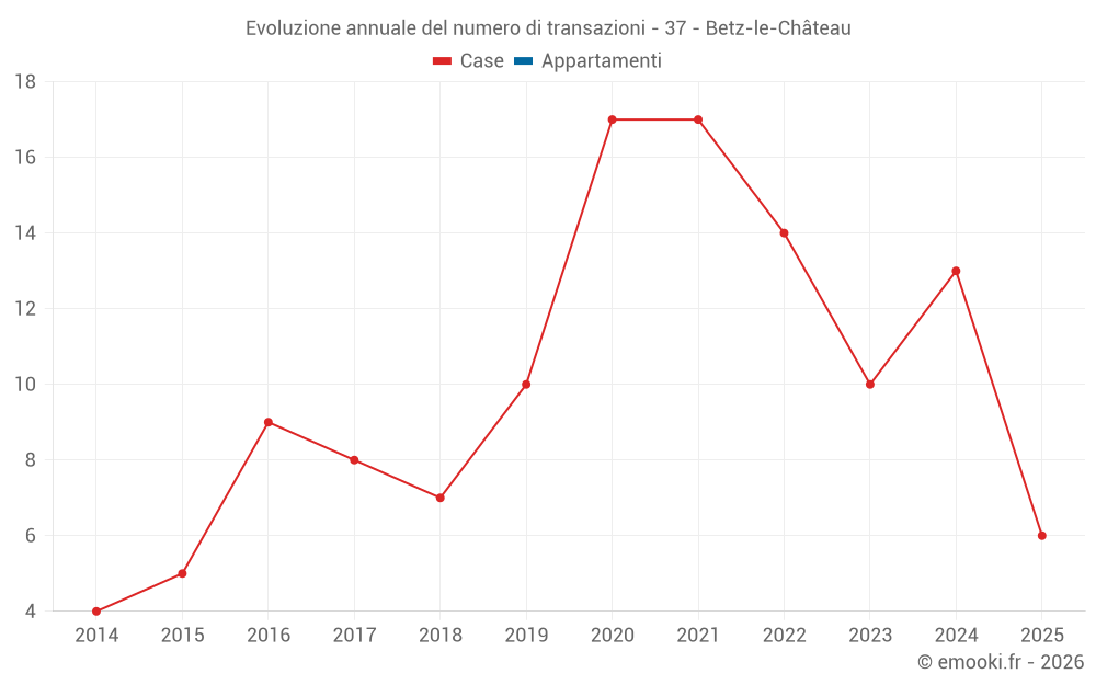 Il prezzo mediano sulle 20 transazioni di case degli ultimi 24 mesi nel comune di Betz-le-Château era di 900 € al metro quadrato per un valore patrimoniale mediano di 102 465 €. In questo periodo il 60% delle transazioni era tra 696 e 1 528 € al metro quadrato (dal 2° all'8° decile).