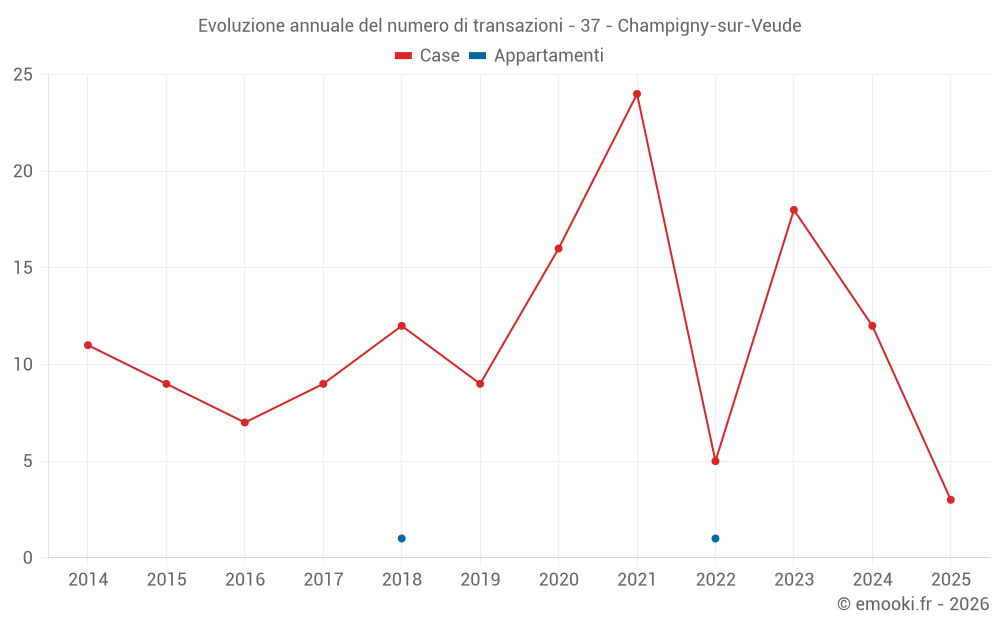 Il prezzo mediano sulle 24 transazioni di case degli ultimi 24 mesi nel comune di Champigny-sur-Veude era di 1 317 € al metro quadrato per un valore patrimoniale mediano di 110 500 €. In questo periodo il 60% delle transazioni era tra 997 e 1 794 € al metro quadrato (dal 2° all'8° decile).