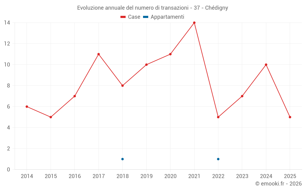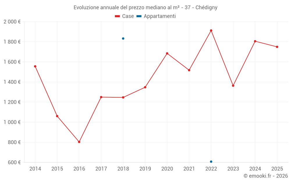 Il prezzo mediano sulle 18 transazioni di case degli ultimi 24 mesi nel comune di Chédigny era di 1 765 € al metro quadrato per un valore patrimoniale mediano di 152 500 €. In questo periodo il 60% delle transazioni era tra 1 290 e 2 316 € al metro quadrato (dal 2° all'8° decile).