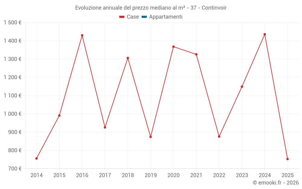 Il prezzo mediano sulle 14 transazioni di case degli ultimi 24 mesi nel comune di Continvoir era di 1 290 € al metro quadrato per un valore patrimoniale mediano di 109 000 €. In questo periodo il 60% delle transazioni era tra 809 e 1 516 € al metro quadrato (dal 2° all'8° decile).