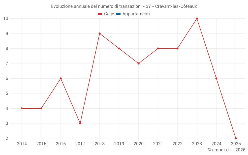 Il prezzo mediano sulle 15 transazioni di case degli ultimi 24 mesi nel comune di Cravant-les-Côteaux era di 1 446 € al metro quadrato per un valore patrimoniale mediano di 145 200 €. In questo periodo il 60% delle transazioni era tra 877 e 1 832 € al metro quadrato (dal 2° all'8° decile).