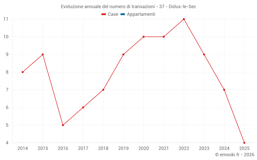 Il prezzo mediano sulle 16 transazioni di case degli ultimi 24 mesi nel comune di Dolus-le-Sec era di 1 742 € al metro quadrato per un valore patrimoniale mediano di 215 000 €. In questo periodo il 60% delle transazioni era tra 1 409 e 2 121 € al metro quadrato (dal 2° all'8° decile).