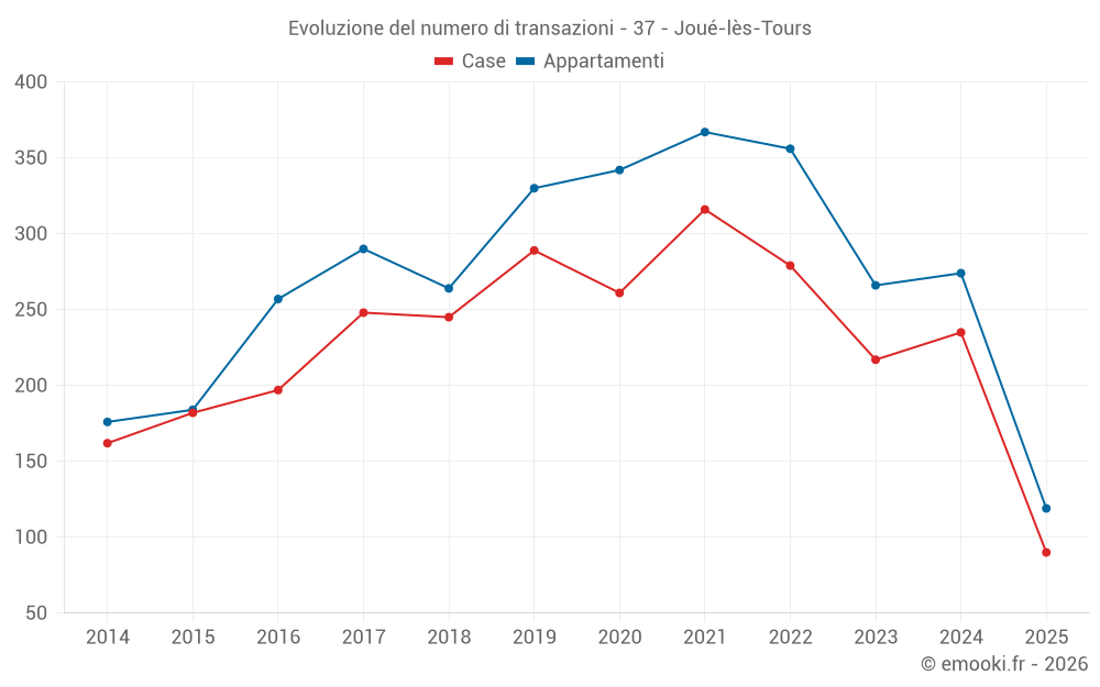Attenzione, ultimo anno incompleto. Le proiezioni sono effettuate in base alle proporzioni tra semestri dell'anno precedente a livello dipartimentale/nazionale e per tipo di proprietà.