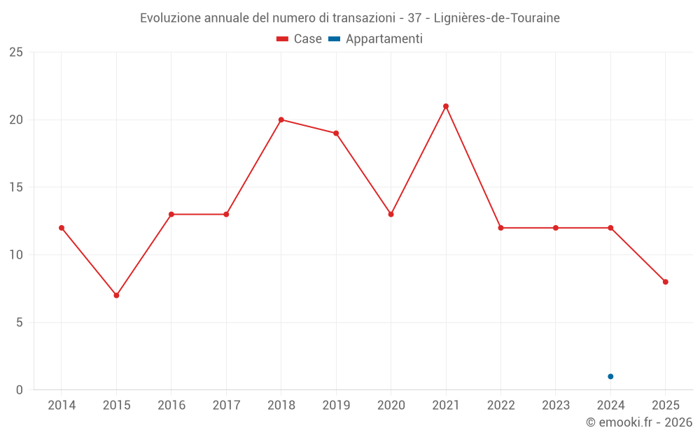 Il prezzo mediano sulle 24 transazioni di case degli ultimi 24 mesi nel comune di Lignières-de-Touraine era di 1 841 € al metro quadrato per un valore patrimoniale mediano di 202 002 €. In questo periodo il 60% delle transazioni era tra 1 424 e 2 641 € al metro quadrato (dal 2° all'8° decile).