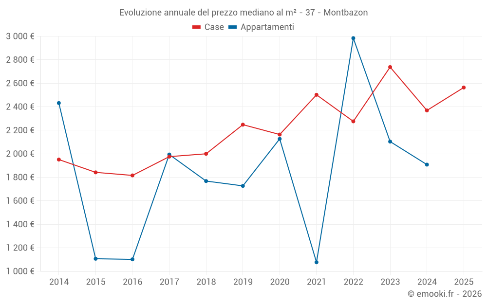Il prezzo mediano sulle 19 transazioni di case degli ultimi 6 mesi nel comune di Montbazon era di 2 564 € al metro quadrato per un valore patrimoniale mediano di 225 000 €. In questo periodo il 60% delle transazioni era tra 1 955 e 2 721 € al metro quadrato (dal 2° all'8° decile).
