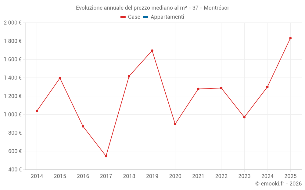 Il prezzo mediano sulle 17 transazioni di case degli ultimi 24 mesi nel comune di Montrésor era di 1 337 € al metro quadrato per un valore patrimoniale mediano di 98 000 €. In questo periodo il 60% delle transazioni era tra 876 e 1 930 € al metro quadrato (dal 2° all'8° decile).