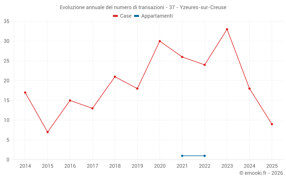 Qual è il prezzo al m2 delle case in Yzeures-sur-Creuse?