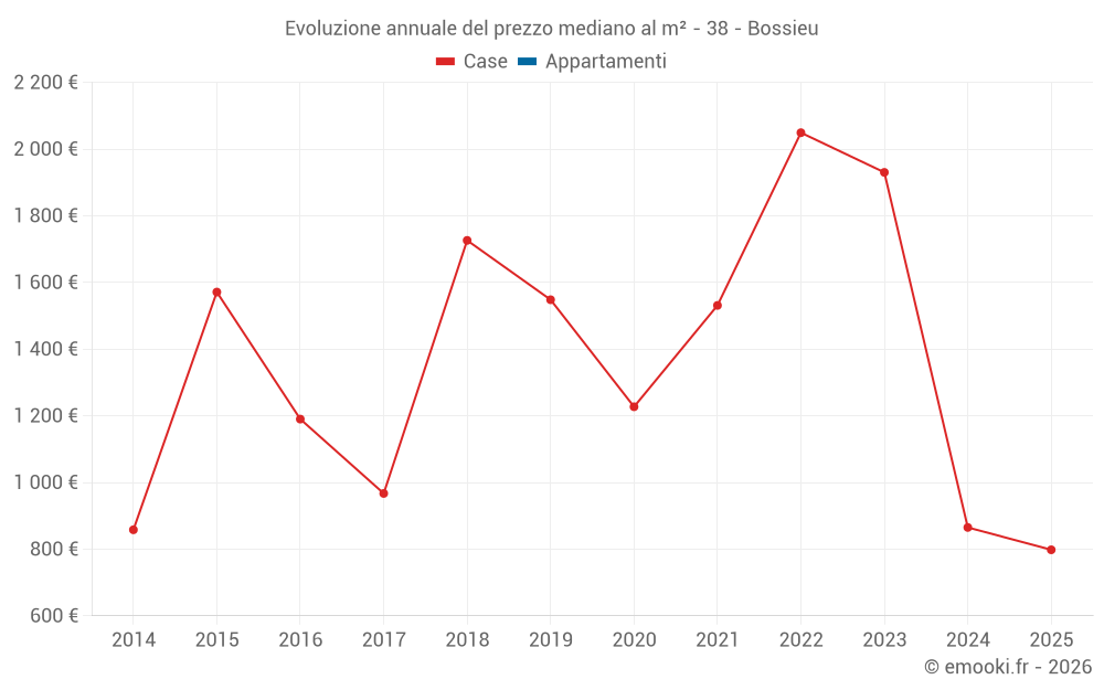 Evoluzione del prezzo mediano al m² degli appartamenti