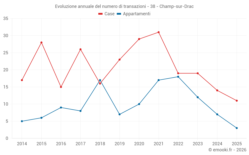 Il prezzo mediano sulle 19 transazioni di case degli ultimi 12 mesi nel comune di Champ-sur-Drac era di 3 027 € al metro quadrato per un valore patrimoniale mediano di 273 900 €. In questo periodo il 60% delle transazioni era tra 2 273 e 3 553 € al metro quadrato (dal 2° all'8° decile).