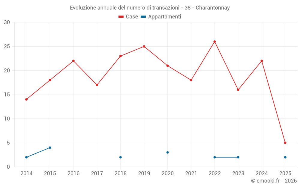 Il prezzo mediano sulle 32 transazioni di case degli ultimi 24 mesi nel comune di Charantonnay era di 2 996 € al metro quadrato per un valore patrimoniale mediano di 283 050 €. In questo periodo il 60% delle transazioni era tra 1 949 e 3 578 € al metro quadrato (dal 2° all'8° decile).