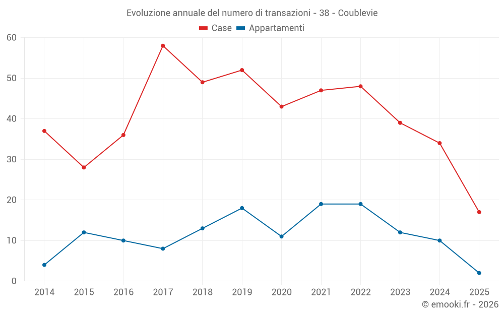 Il prezzo mediano sulle 33 transazioni di case degli ultimi 12 mesi nel comune di Coublevie era di 3 640 € al metro quadrato per un valore patrimoniale mediano di 362 500 €. In questo periodo il 60% delle transazioni era tra 2 953 e 4 091 € al metro quadrato (dal 2° all'8° decile).