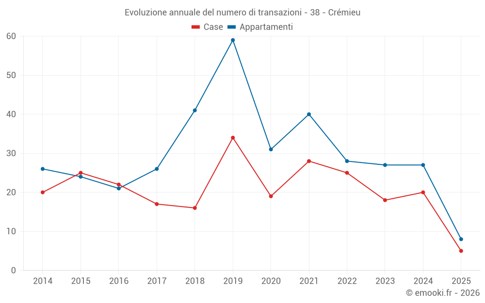 Il prezzo mediano sulle 20 transazioni di appartamenti degli ultimi 12 mesi nel comune di Crémieu era di 2 802 € al metro quadrato per un valore patrimoniale mediano di 178 250 €. In questo periodo il 60% delle transazioni era tra 2 056 e 3 108 € al metro quadrato (dal 2° all'8° decile).