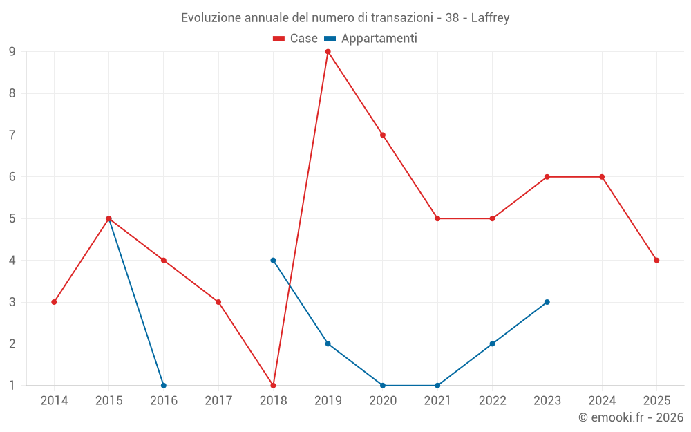 Attenzione, ultimo anno incompleto. Le proiezioni sono effettuate in base alle proporzioni tra semestri dell'anno precedente a livello dipartimentale/nazionale e per tipo di proprietà .
