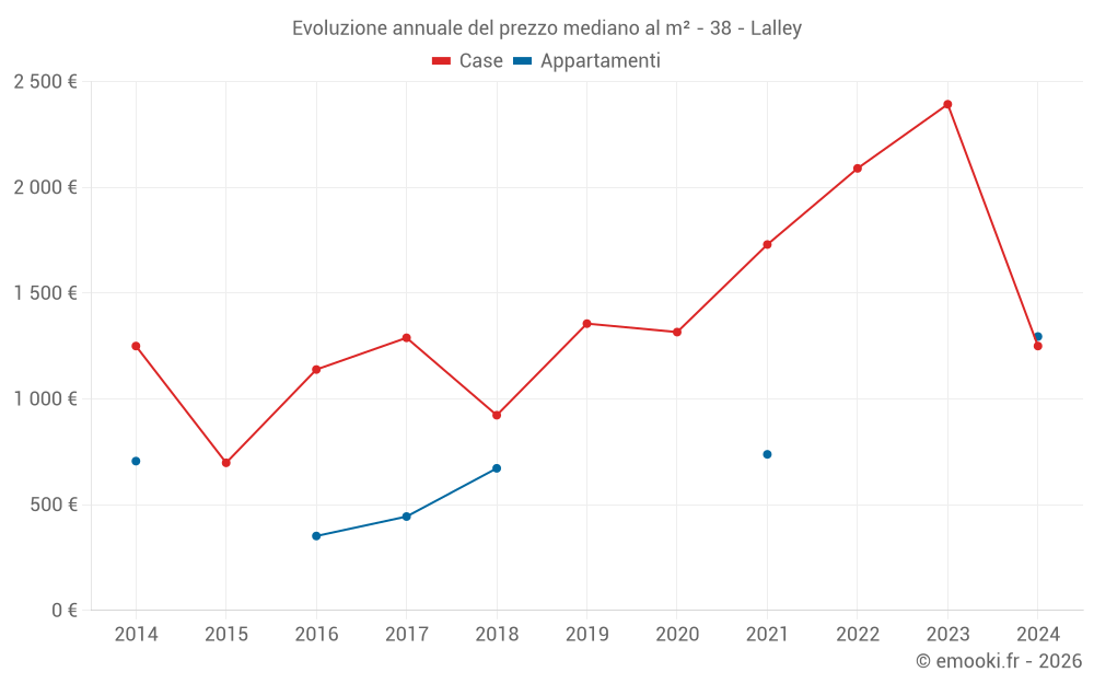 Evoluzione del prezzo mediano al m² degli appartamenti