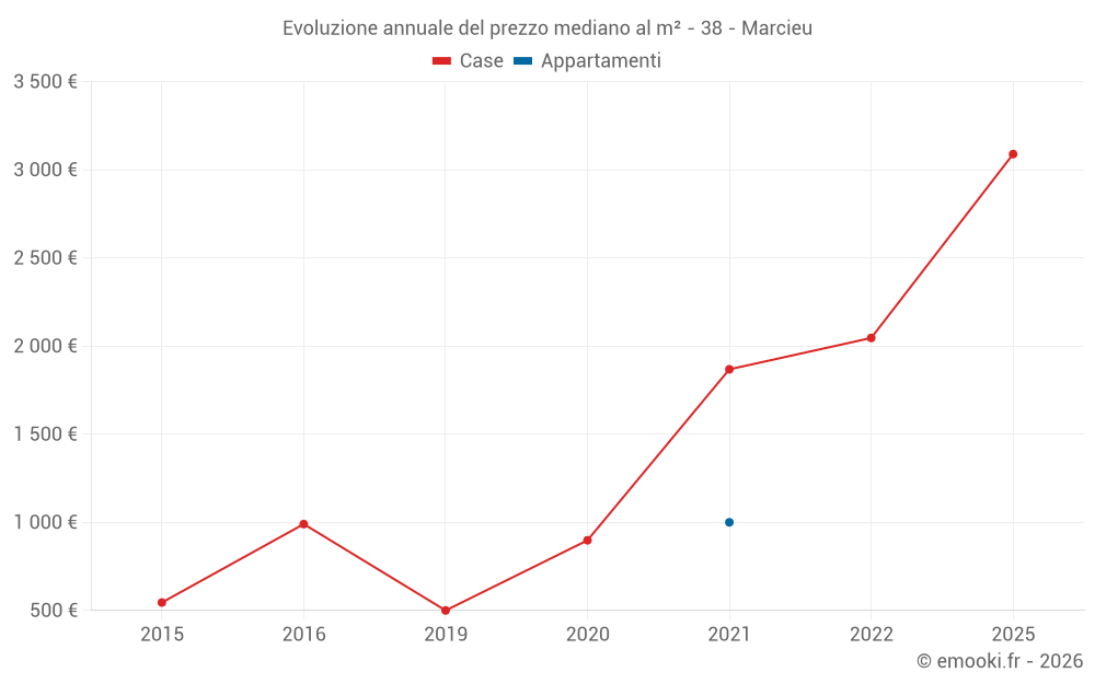 Evoluzione del prezzo mediano al m² degli appartamenti