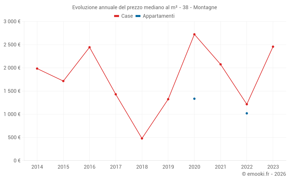 Evoluzione del prezzo mediano al m² degli appartamenti