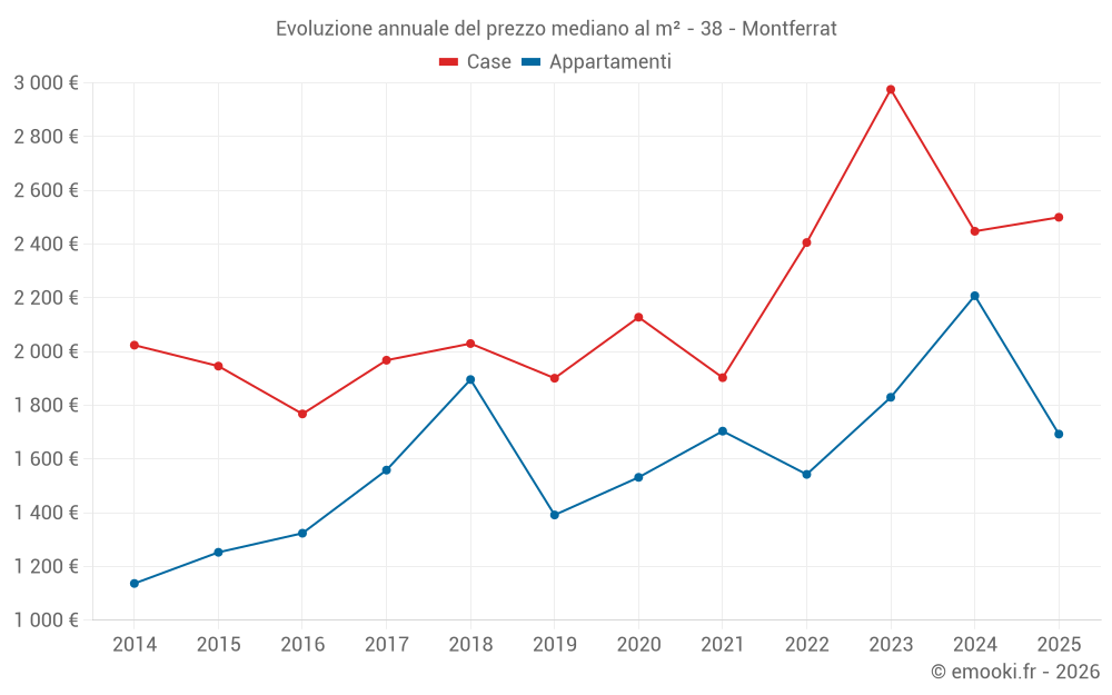 Qual è il prezzo al m2 delle case in Montferrat?