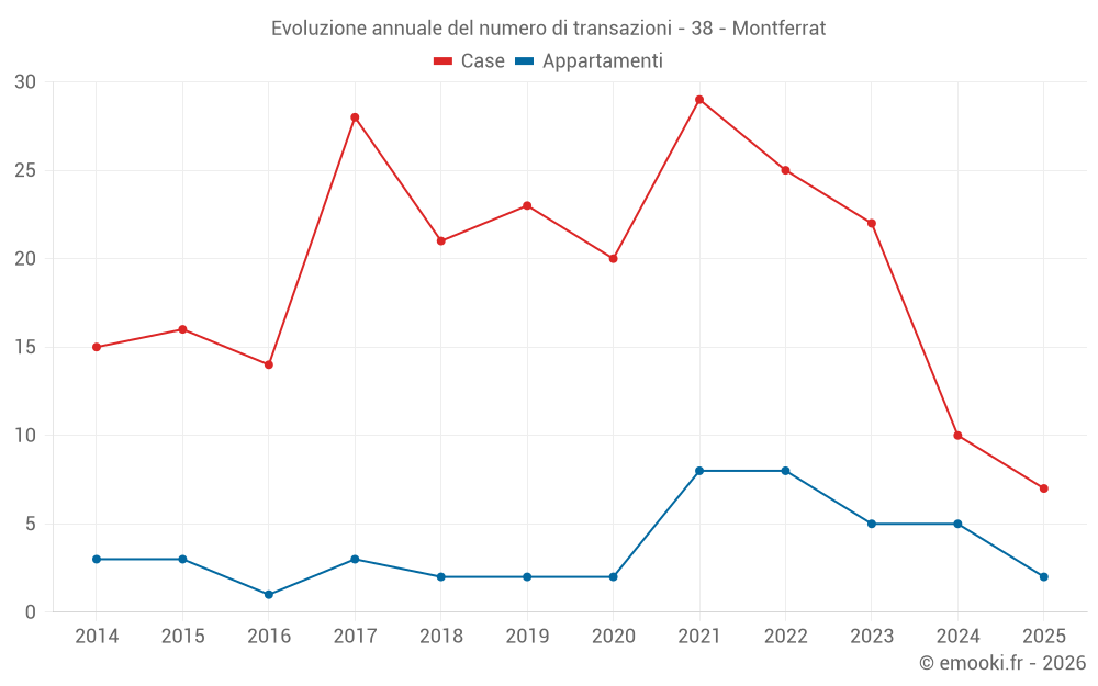 Il prezzo mediano sulle 27 transazioni di case degli ultimi 24 mesi nel comune di Montferrat era di 2 465 € al metro quadrato per un valore patrimoniale mediano di 237 000 €. In questo periodo il 60% delle transazioni era tra 1 287 e 3 167 € al metro quadrato (dal 2° all'8° decile).