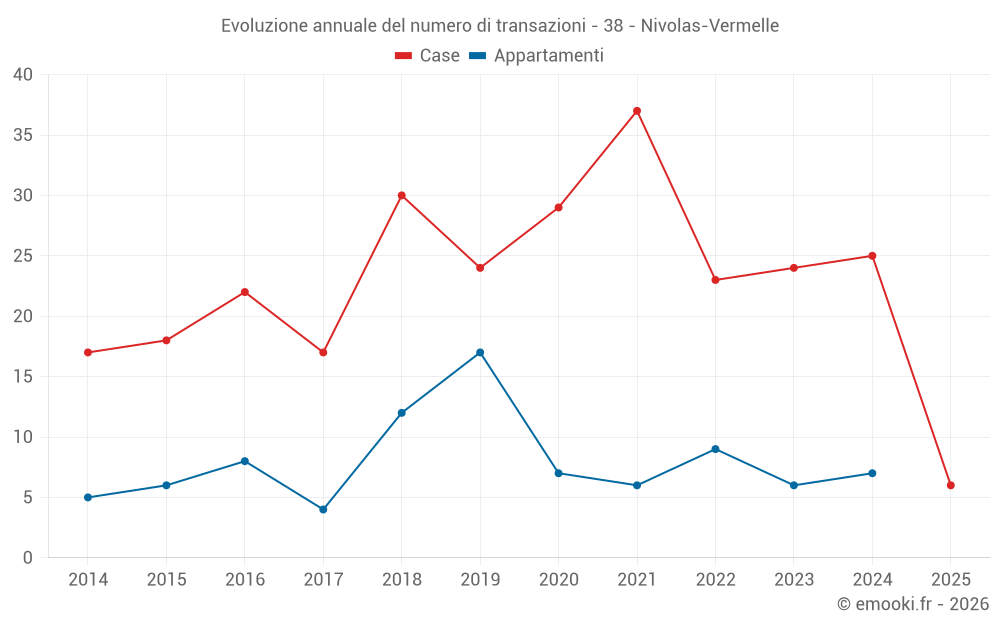 Il prezzo mediano sulle 20 transazioni di case degli ultimi 12 mesi nel comune di Nivolas-Vermelle era di 2 732 € al metro quadrato per un valore patrimoniale mediano di 256 900 €. In questo periodo il 60% delle transazioni era tra 1 851 e 3 236 € al metro quadrato (dal 2° all'8° decile).