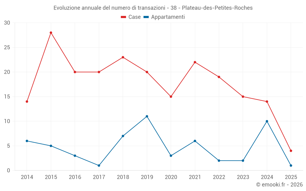 Il prezzo mediano sulle 28 transazioni di case degli ultimi 24 mesi nel comune di Plateau-des-Petites-Roches era di 3 519 € al metro quadrato per un valore patrimoniale mediano di 374 655 €. In questo periodo il 60% delle transazioni era tra 2 897 e 4 556 € al metro quadrato (dal 2° all'8° decile).