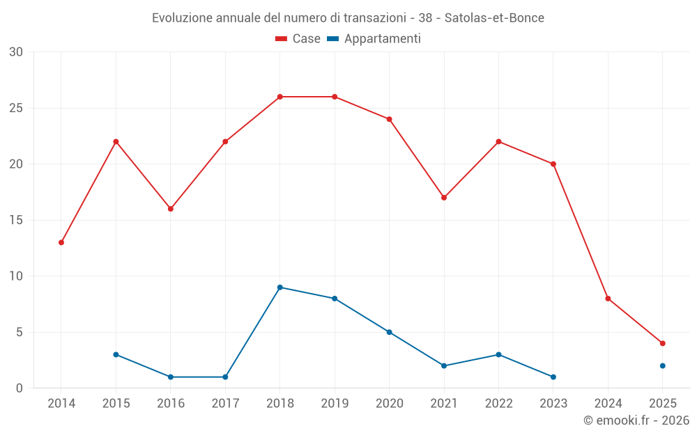 Il prezzo mediano sulle 24 transazioni di case degli ultimi 24 mesi nel comune di Satolas-et-Bonce era di 3 168 € al metro quadrato per un valore patrimoniale mediano di 353 000 €. In questo periodo il 60% delle transazioni era tra 2 386 e 3 856 € al metro quadrato (dal 2° all'8° decile).